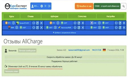 Спешим поделиться хорошей новостью! Наш криптообменник AllCharge.online получил очередной положительный отзыв на мониторинге Курс.Експерт.